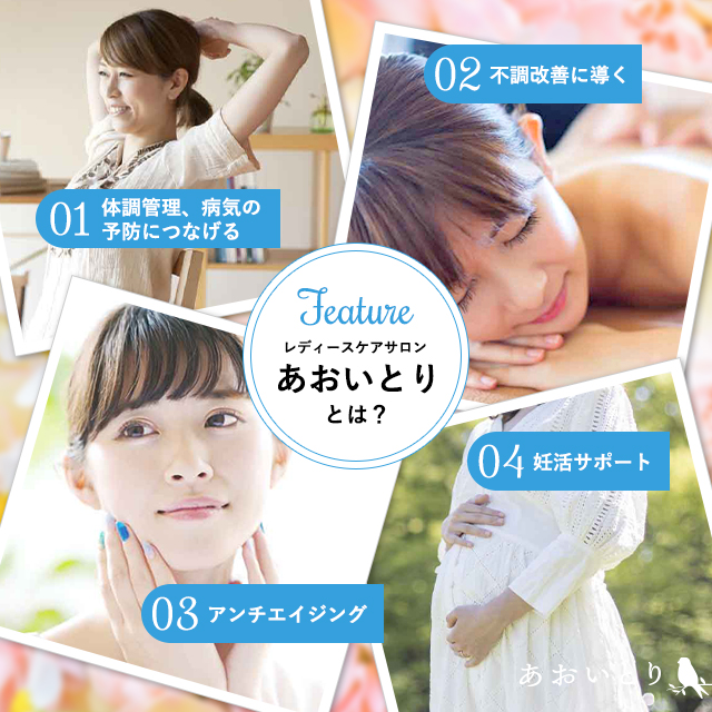 冷え、便秘、お腹の張り、ストレス、むくみ、PMS、女性特有のお悩みの方々が多くご来店頂いております。
